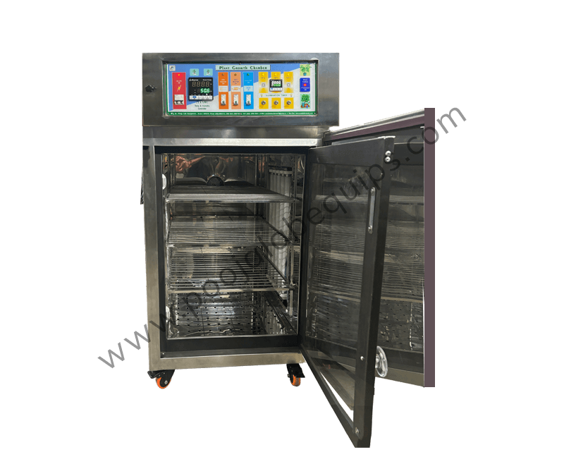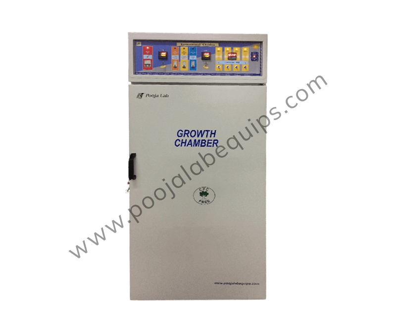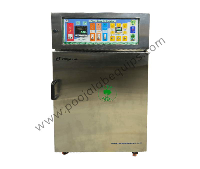 Pooja Lab's illuminated Plant Growth Chambers are non-detachable and designed to create duplicate natural conditions within the chamber are available in two versions i.e. non-GMP and GMP choose from 5 different models are facilitate many application such as botanical and agricultural research including seed germination studies, plant pathology, plant tissue culture, plant genetic research, shelf life testing, chromatography test, plant growth studies, microbiological propagation, biotechnology and more. These chambers are equipped with latest Microprocessor based controller. Temperature Range between 10 to 50°C ± 2°C. and humidity range between 40% to 95% ± 3%. Temperature uniformity will be ±3° and RH will be 5%.