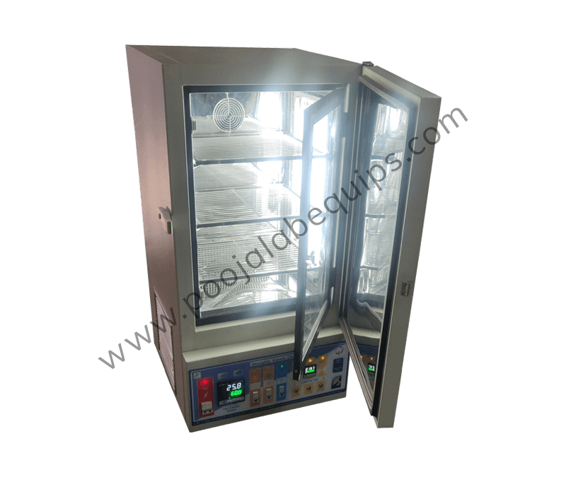 - Higher capacity cooling system provided to take care of reduction of temperature during the day and night cyclic test while using illumination and it won't disturb relative humidity in the work space.